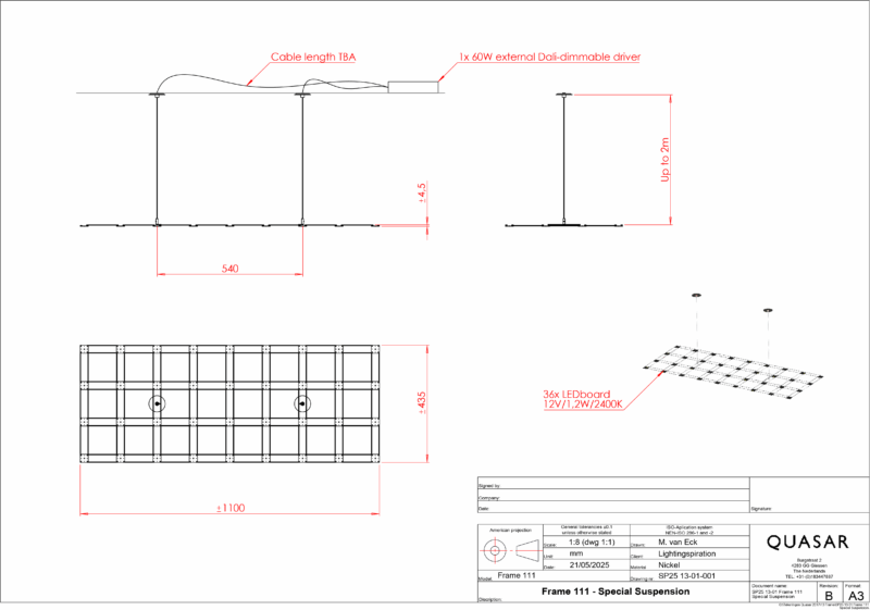 A tailored installation guide made it possible the fixture got installed by a professional installer. All together….resulting in a beautiful final outcome. The project is even more stunning as the designer doubled the lighting effect by using a mirror faced ceiling.