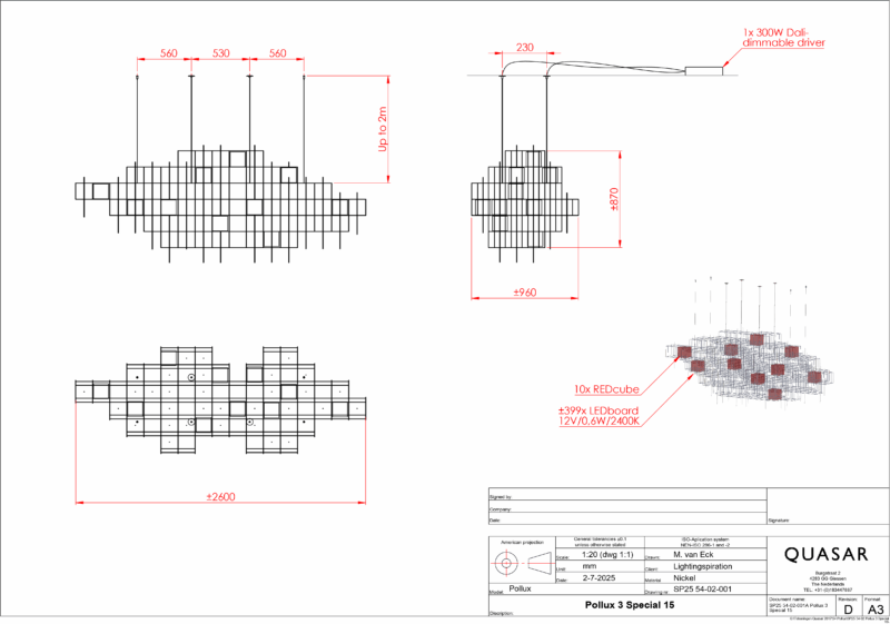 Pollux 3 – Size of the cubes within the fixture were increased 12.5cm to 15cm