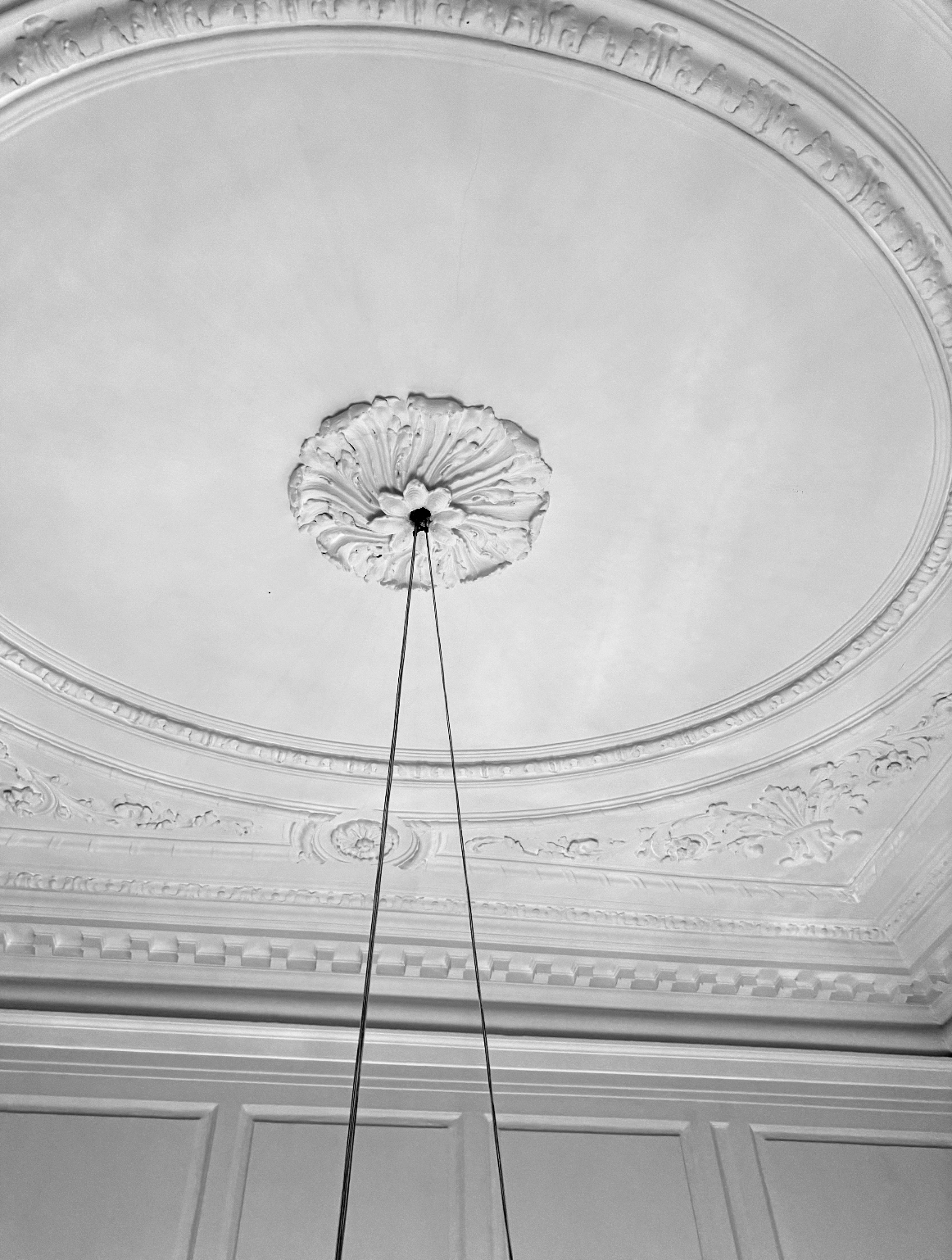 Fixing Method, Due to the buildings Grade II* listing, the ornate ceiling rose had to be retained and protected at all costs during installation and operation.